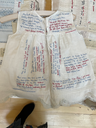 Our October meeting saw Ali Ferguson of “The Purple Thread Shed” make a welcome return to be our speaker for the month and lead the last workshop of the current year . She explained her creative process and talked about the inspirations behind her new book “Cloth Stories”. Thankfully she brought lots of examples of her work for members to see as the projector decided to go on strike (thankfully now fixed).